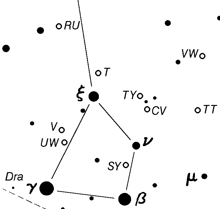 T Draconis resides just north of the head of the dragon